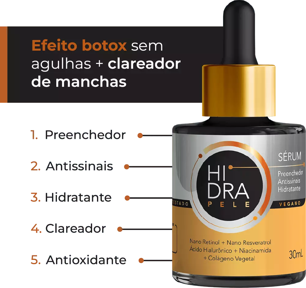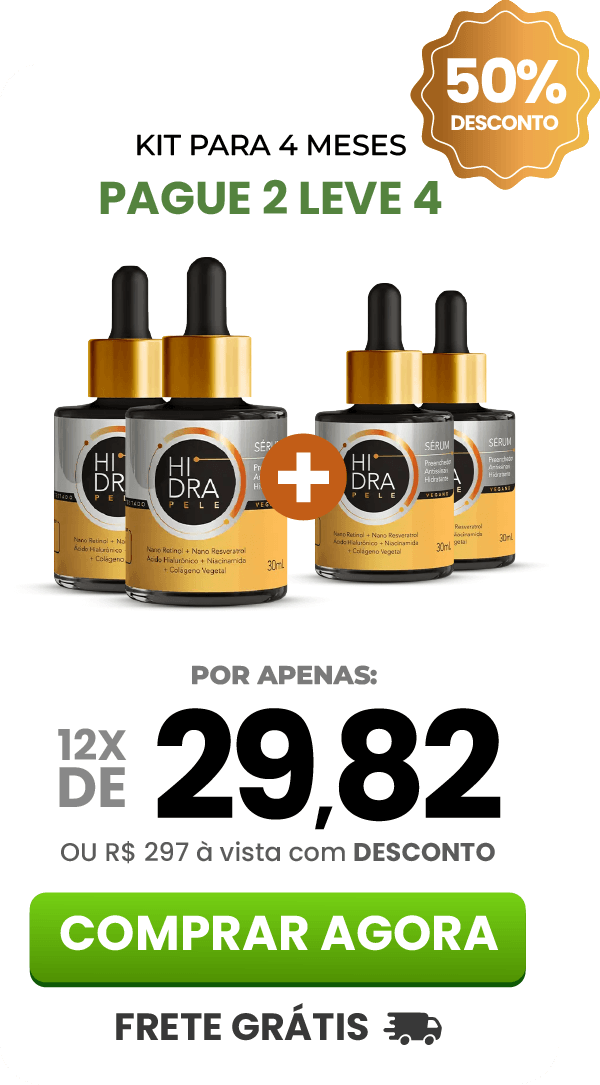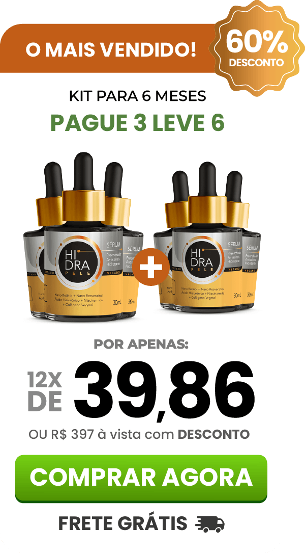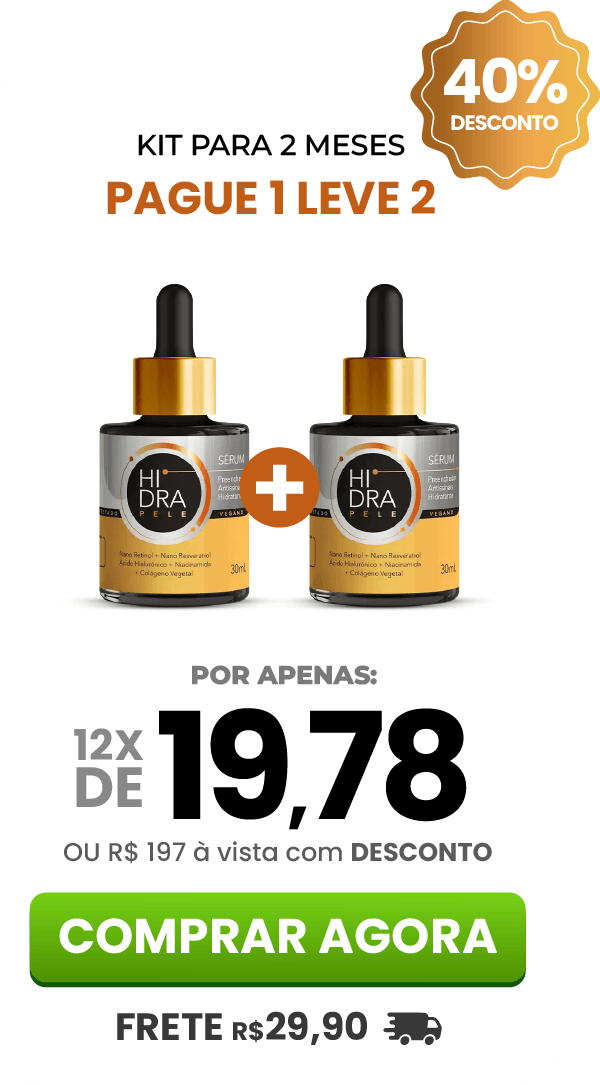 O Sérum HidraPele acelera a renovação celular, deixando sua pele mais jovem e saudável ao longo dos anos. Não se preocupe mais com as mudanças negativas que a idade traz – experimente e se sinta mais confiante e atraente a cada dia. Não deixe a idade definir sua aparência – descubra uma nova e mais jovem versão de si mesmo(a)